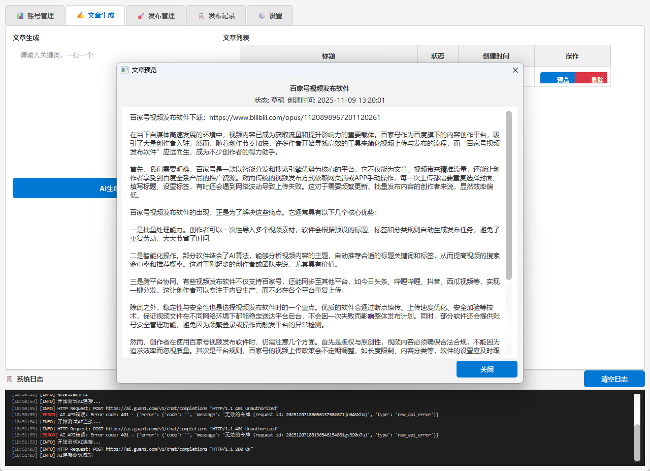 不仅支持视频批量投稿,还支持专栏文章自动发布。同步分发动态,全方位覆盖粉丝视野。